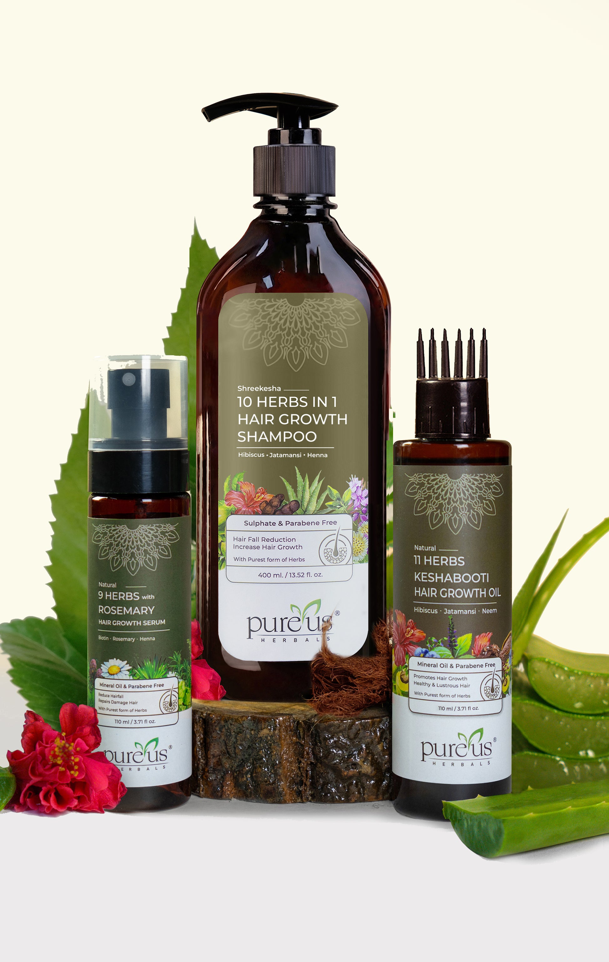 Pureus Herbals Hair Growth Kit made with all the natural & purest form of handpicked ingredients. It best for hair growth in india. This herbal shampoo, oil, Hair Serum crafted for women which control dandruff, frizzy, dry hair and hair fall. It has also conditioner properties which helps to control hair fall.